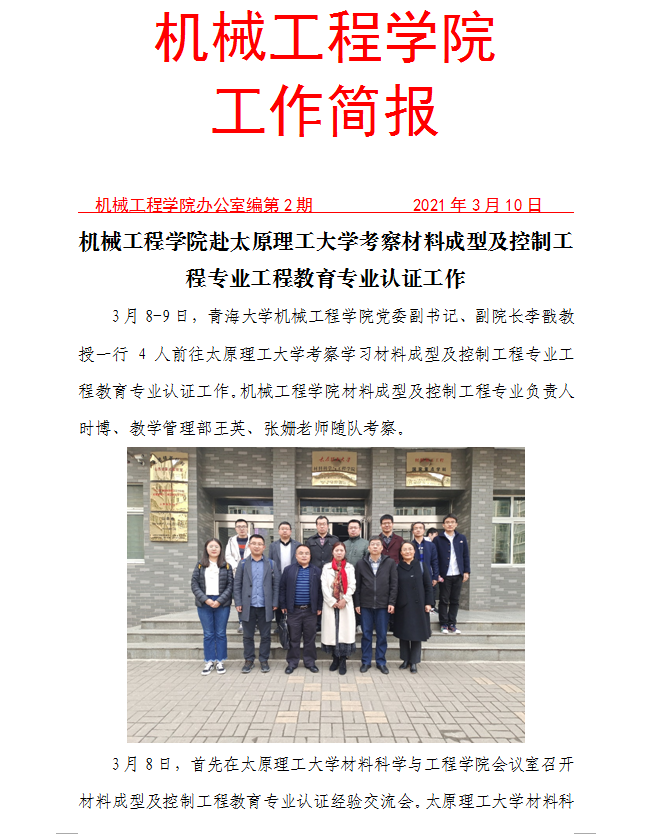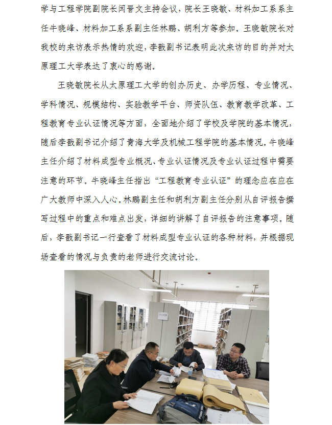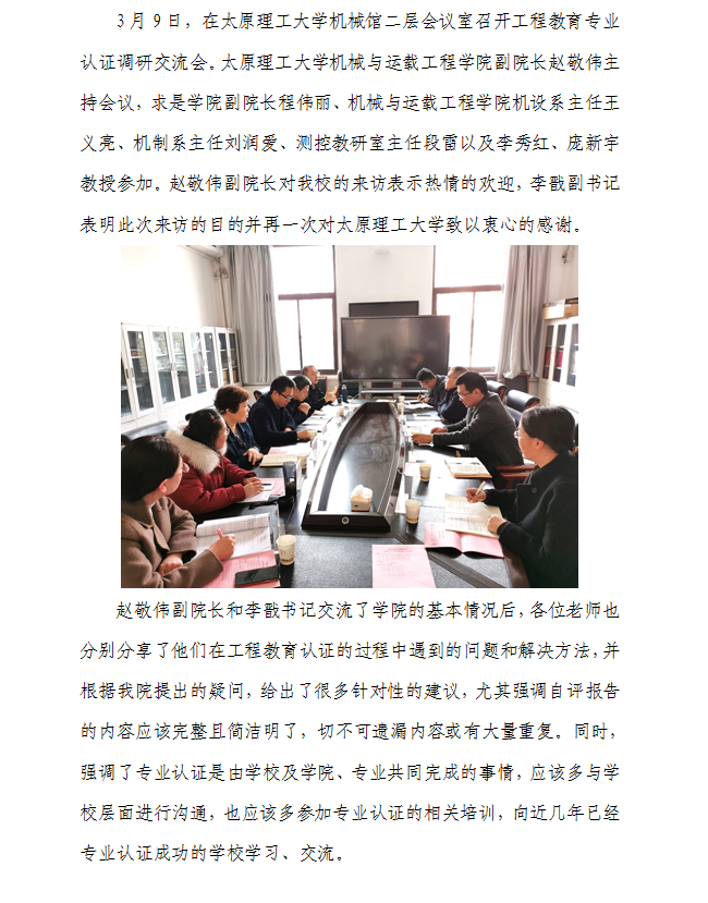 7mmtv 赴太原理工大学考察材料成型及控制工程专业工程教育专业认证工作