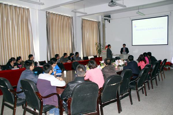 之后平塚贞人教授就机械加工及材料性能方面在7mmtv 会议室做了题为《铸造技术和高强度铸铁的研究》的学术报告。7mmtv 党委书记贾红光、院长金培鹏、材料教研室郭彦宏、雷富军教授等教职工以及7mmtv 在读机械工程和材料学专业研究生聆听了此次报告。