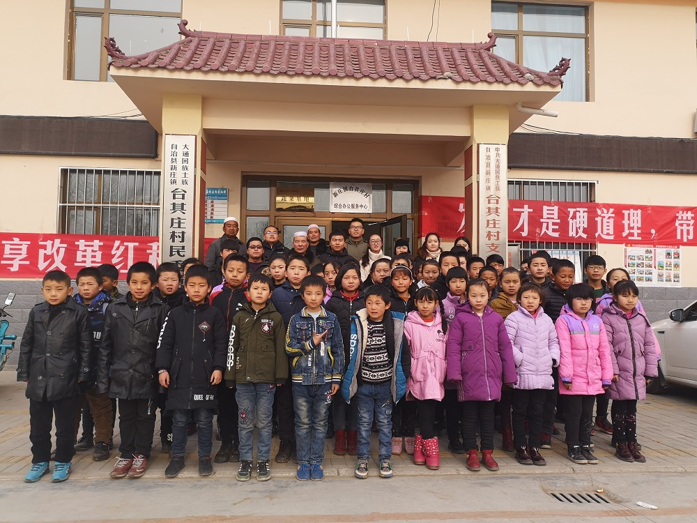 经过前期周密的组织协调工作,1月14日上午,团队一行人由李戬教授和卢海静老师带队驱车前往台其庄村,于上午9点到达台其庄村,正式拉开此次公益教育扶贫活动的序幕。