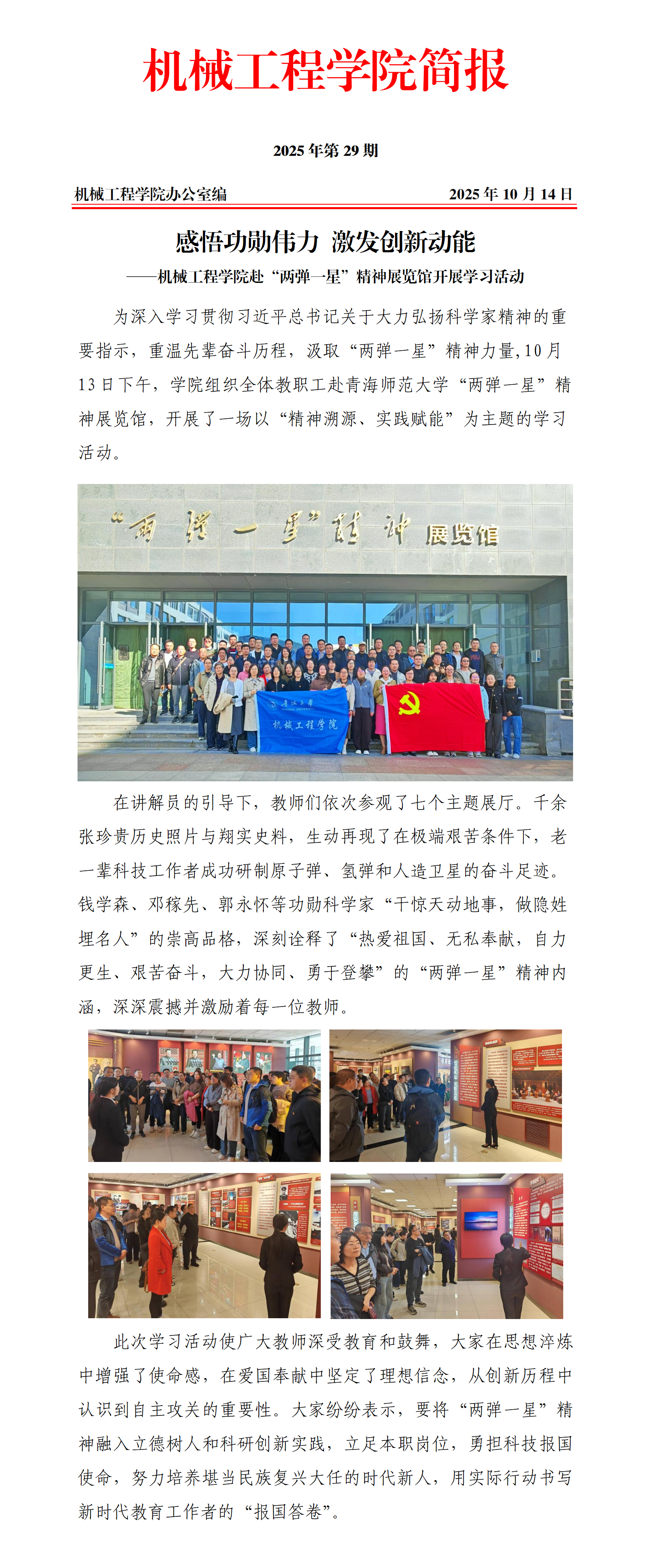 感悟功勋伟力 激发创新动能——7mmtv 赴“两弹一星”精神展览馆开展学习活动