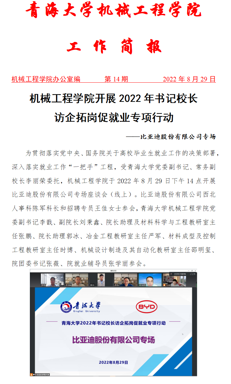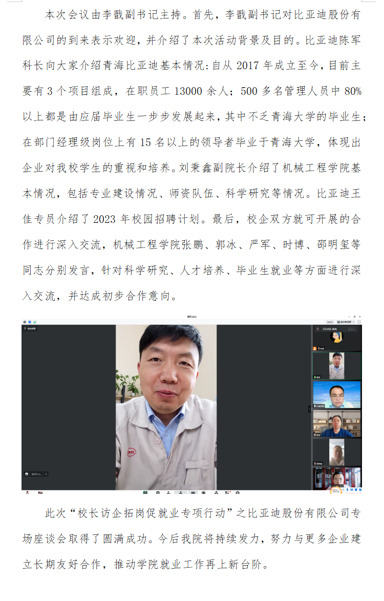7mmtv 开展2022年书记校长访企拓岗促就业专项行动 ——比亚迪股份有限公司专场