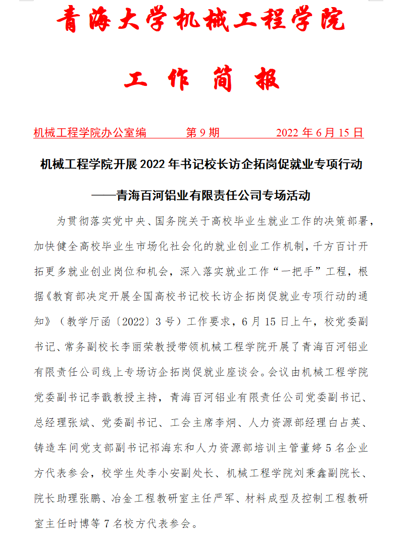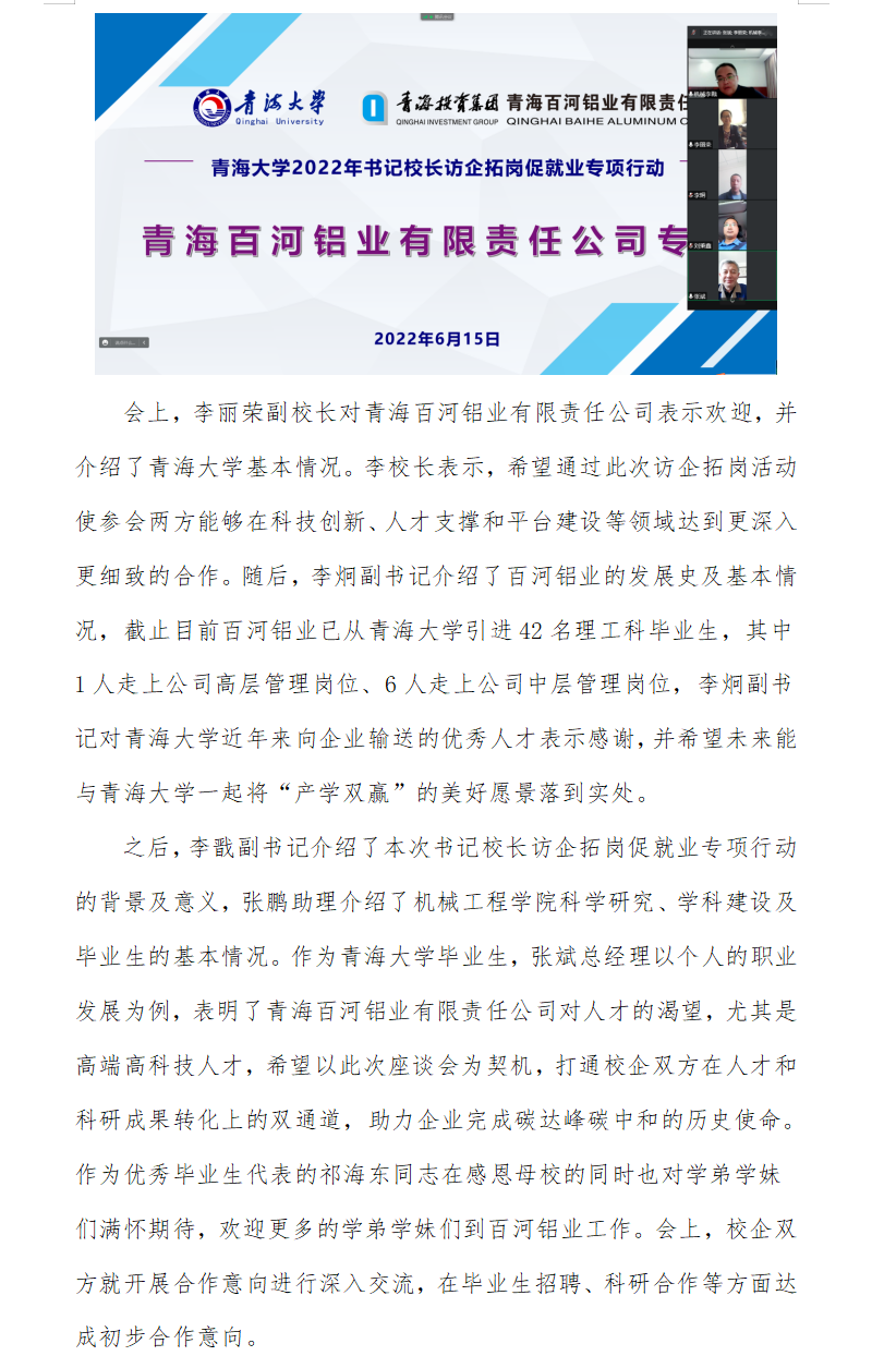 7mmtv 开展2022年书记校长访企拓岗促就业专项行动 ——青海百河铝业有限责任公司专场活动